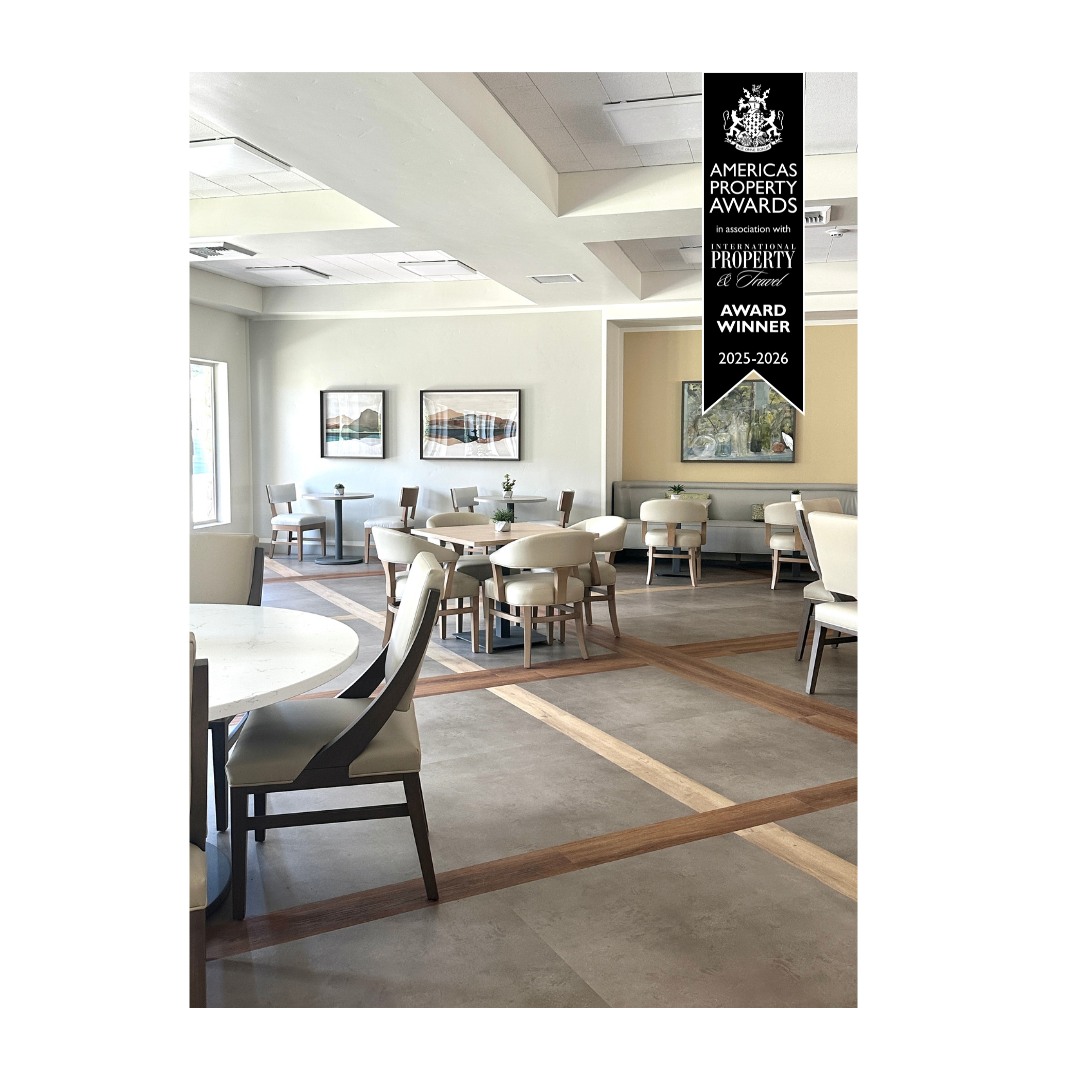 Larisa ar savu komandu radījusi 164 590 sq ft (aptuveni 15 291 m²) senioru dzīvojamās rezidences interjeru kā mierpilnu, iedvesmojošu un kūrorta sajūtās balstītu telpu. Projekts izceļas ar smalkām detaļām – no unikālā skulpturālā kamīna līdz rūpīgi atlasītiem materiāliem, mēbelēm un telpas atmosfērai, kas veidota ar lielu uzmanību un profesionalitāti.